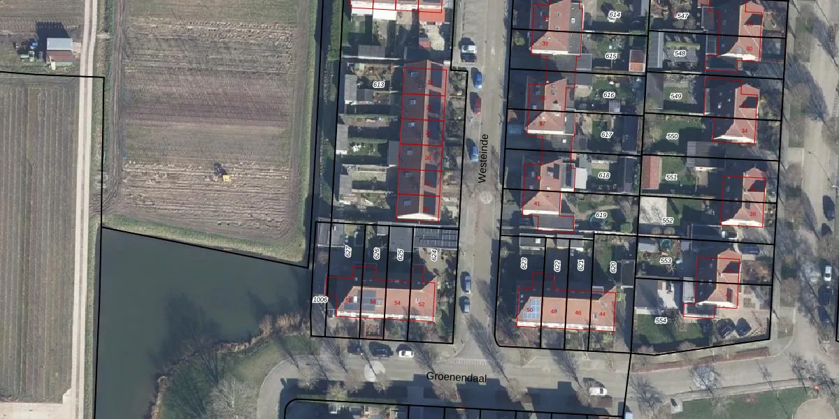 Het perceel waarop Westeinde 34 staat heeft een oppervlakte van 1865 m². Dit is een zeer groot perceel. De perceeloppervlakte wordt geregistreerd door het Kadaster. Gedetailleerde informatie over de maten van dit perceel kunt u vinden in het rapport Kadastrale kaart met maatvoering van Westeinde 34.