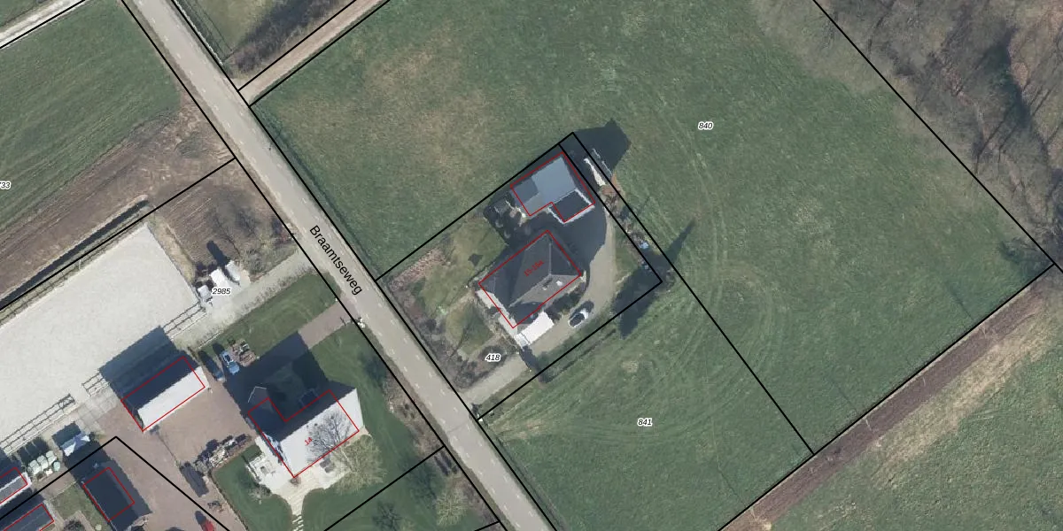 Braamtseweg 15 is gelegen op kadastraal perceel BER02M418. Deze kadastrale aanduiding is uniek en wordt gebruikt door het Kadaster om eigendomsrechten en andere zakelijke rechten vast te leggen. Het perceel maakt onderdeel uit van de kadastrale gemeente Bergh.