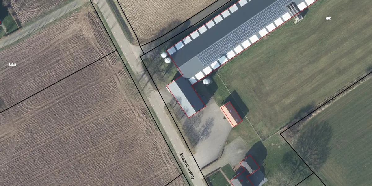 Braamtseweg 5 is gelegen op kadastraal perceel BER02M103. Deze kadastrale aanduiding is uniek en wordt gebruikt door het Kadaster om eigendomsrechten en andere zakelijke rechten vast te leggen. Het perceel maakt onderdeel uit van de kadastrale gemeente Bergh.