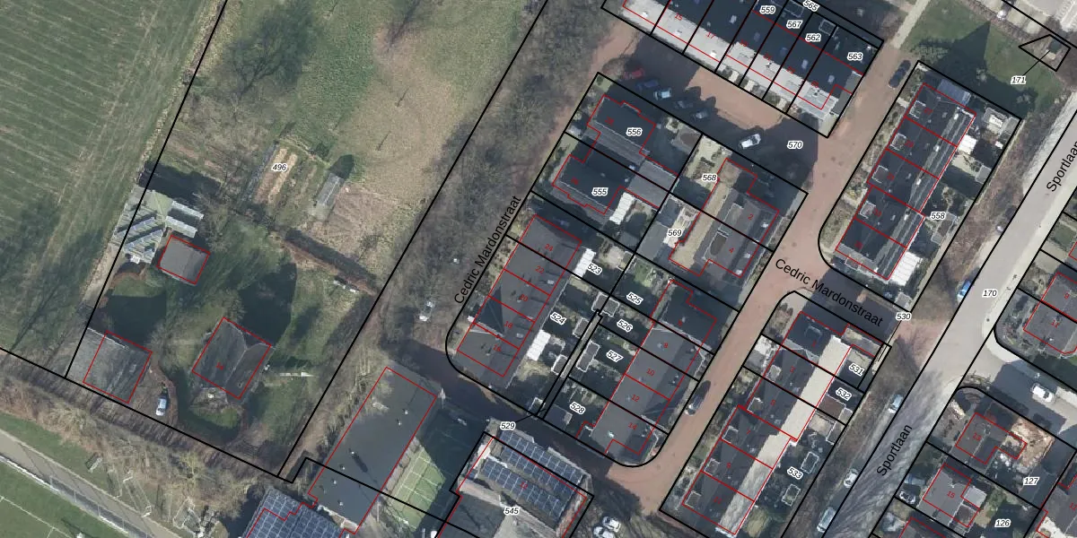 Het perceel waarop Cedric Mardonstraat 22 staat heeft een oppervlakte van 570 m². Dit is een groot perceel. De perceeloppervlakte wordt geregistreerd door het Kadaster. Gedetailleerde informatie over de maten van dit perceel kunt u vinden in het rapport Kadastrale kaart met maatvoering van Cedric Mardonstraat 22.