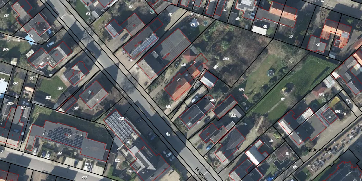 Hoofdstraat 18 is gelegen op kadastraal perceel BER02G516. Deze kadastrale aanduiding is uniek en wordt gebruikt door het Kadaster om eigendomsrechten en andere zakelijke rechten vast te leggen. Het perceel maakt onderdeel uit van de kadastrale gemeente Bergh.