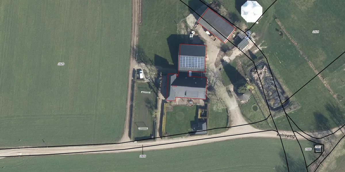 Het perceel waarop Kelreweg 1-a staat heeft een oppervlakte van 1,8 ha. Dit is een zeer groot perceel. De perceeloppervlakte wordt geregistreerd door het Kadaster. Gedetailleerde informatie over de maten van dit perceel kunt u vinden in het rapport Kadastrale kaart met maatvoering van Kelreweg 1-a.