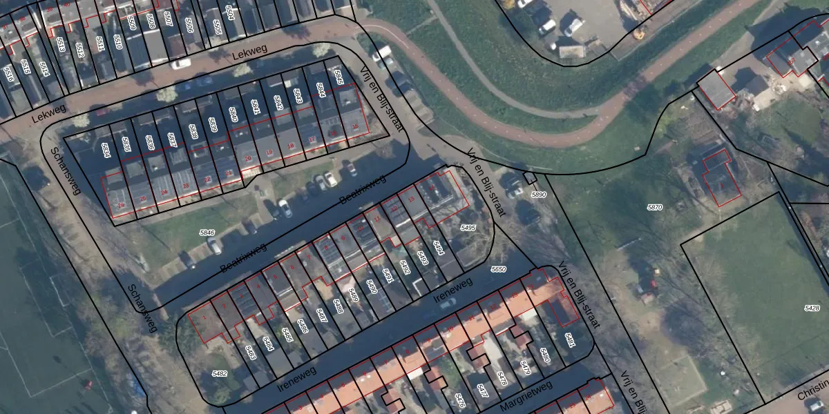 Gebruik de zoekbalk of klik op een perceel voor informatie over de adressen binnen dit perceel.