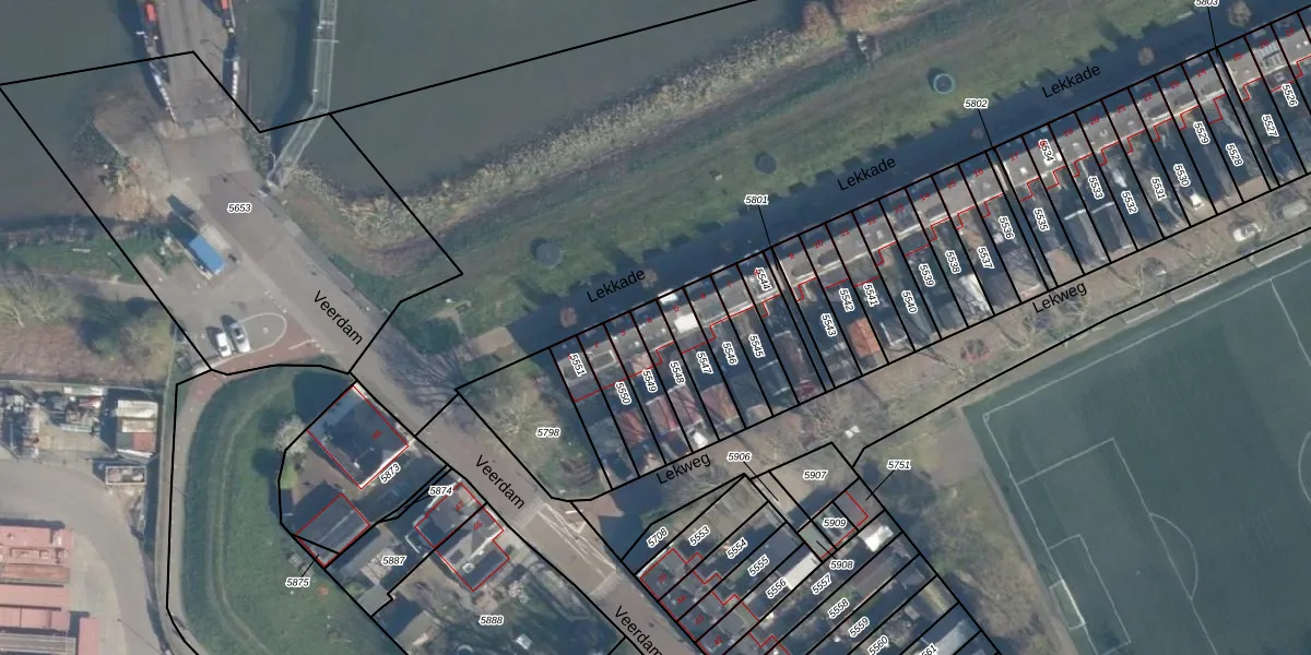 Het perceel waarop Lekkade 4 staat heeft een oppervlakte van 106 m². Dit is een middelgroot perceel. De perceeloppervlakte wordt geregistreerd door het Kadaster. Gedetailleerde informatie over de maten van dit perceel kunt u vinden in het rapport Kadastrale kaart met maatvoering van Lekkade 4.