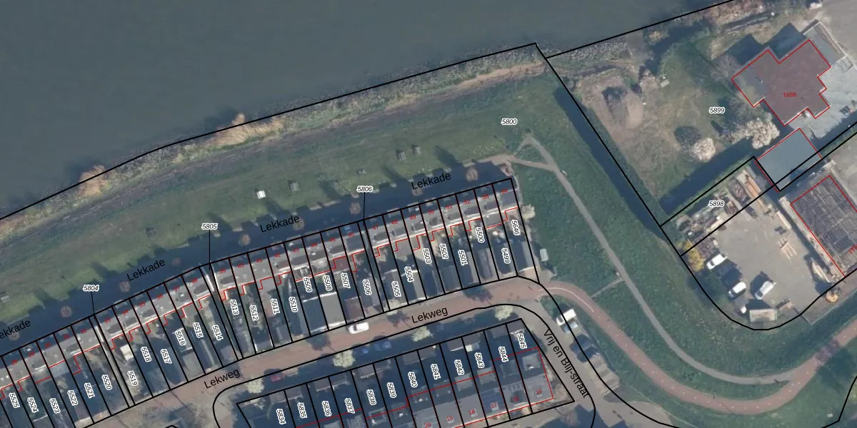 Het perceel waarop Lekkade 50 staat heeft een oppervlakte van 97 m². Dit is een klein perceel. De perceeloppervlakte wordt geregistreerd door het Kadaster. Gedetailleerde informatie over de maten van dit perceel kunt u vinden in het rapport Kadastrale kaart met maatvoering van Lekkade 50.