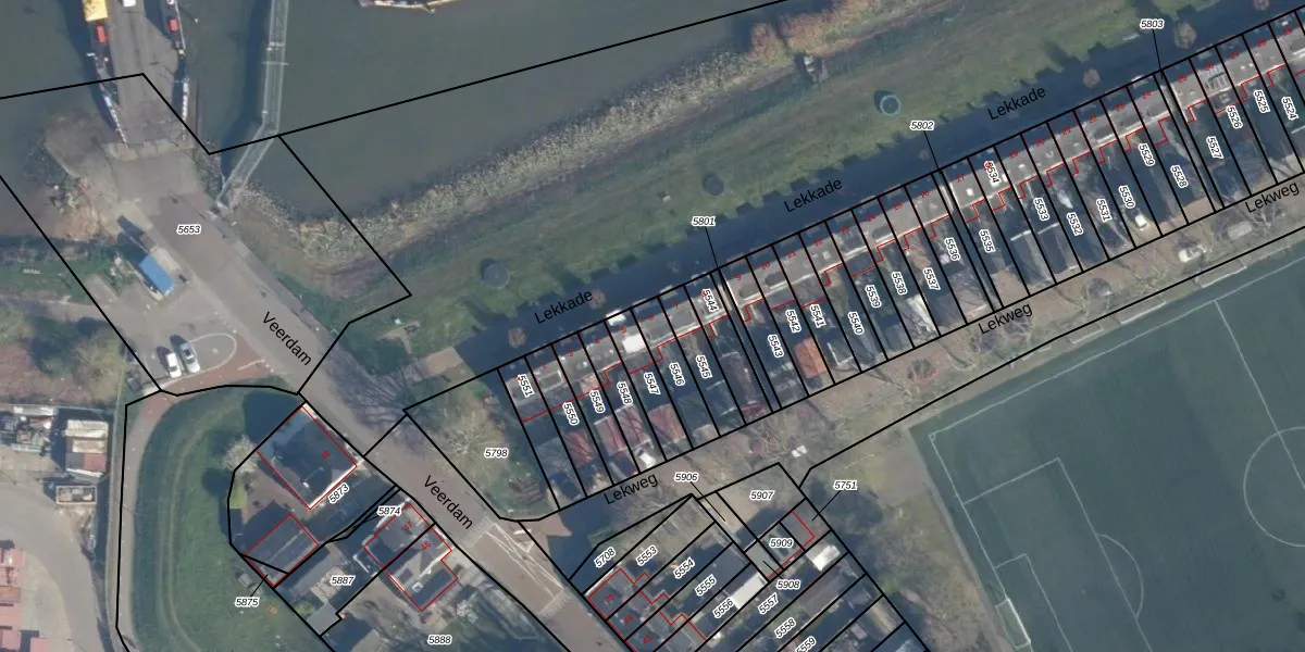 Het perceel waarop Lekkade 6 staat heeft een oppervlakte van 105 m². Dit is een middelgroot perceel. De perceeloppervlakte wordt geregistreerd door het Kadaster. Gedetailleerde informatie over de maten van dit perceel kunt u vinden in het rapport Kadastrale kaart met maatvoering van Lekkade 6.