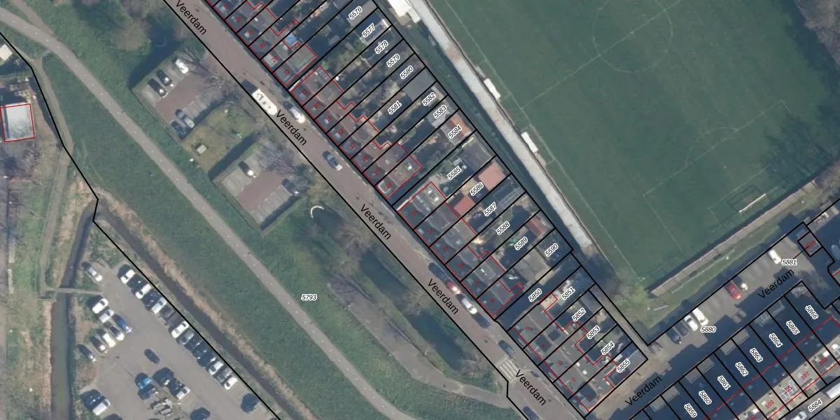 Het perceel waarop Veerdam 13 staat heeft een oppervlakte van 207 m². Dit is een middelgroot perceel. De perceeloppervlakte wordt geregistreerd door het Kadaster. Gedetailleerde informatie over de maten van dit perceel kunt u vinden in het rapport Kadastrale kaart met maatvoering van Veerdam 13.