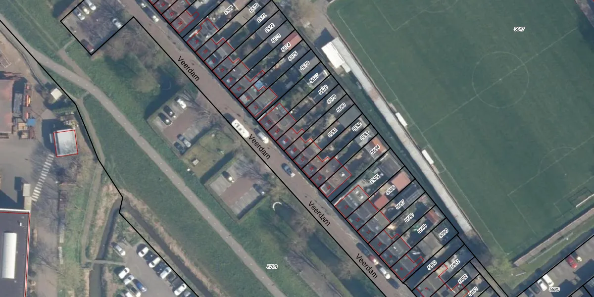 Het perceel waarop Veerdam 18 staat heeft een oppervlakte van 121 m². Dit is een middelgroot perceel. De perceeloppervlakte wordt geregistreerd door het Kadaster. Gedetailleerde informatie over de maten van dit perceel kunt u vinden in het rapport Kadastrale kaart met maatvoering van Veerdam 18.