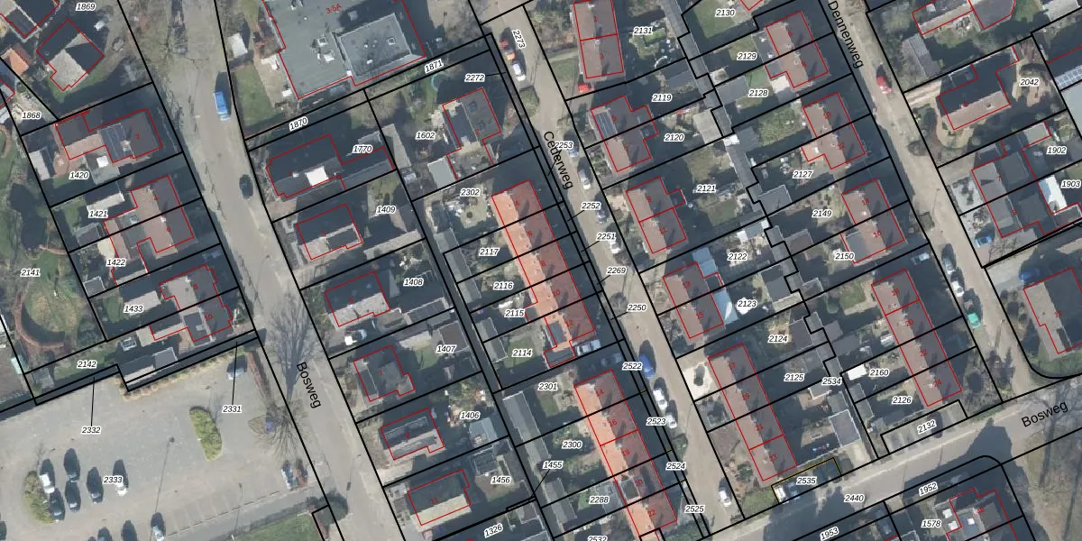 Het perceel waarop het adres ligt is VOO00-G-2116. De afkorting 'VOO00' staat voor kadastrale gemeente Voorst. Het perceel is kleiner dan gemiddeld in Voorst. Het perceel is 140 m² groot, terwijl het gemiddelde ligt op 1,0 ha. Het grootste perceel in de kadastrale gemeente is 94,4 ha. Het kleinste perceel heeft een oppervlakte van 0 m². Op het perceel bevinden zich geen andere adressen. In de Basisregistratie Kadaster (BRK) werden de grenzen van het perceel geregistreerd op 04-12-2009.