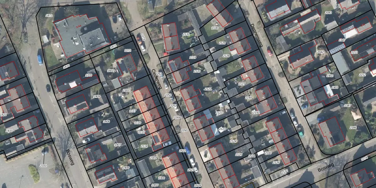 Het perceel waarop het adres ligt is VOO00-G-2121. De afkorting 'VOO00' staat voor kadastrale gemeente Voorst. Het perceel is kleiner dan gemiddeld in Voorst. Het perceel is 640 m² groot, terwijl het gemiddelde ligt op 1,0 ha. Het grootste perceel in de kadastrale gemeente is 94,4 ha. Het kleinste perceel heeft een oppervlakte van 0 m². Op het perceel zijn 3 adressen aanwezig. In de Basisregistratie Kadaster (BRK) werden de grenzen van het perceel geregistreerd op 11-01-2010.
