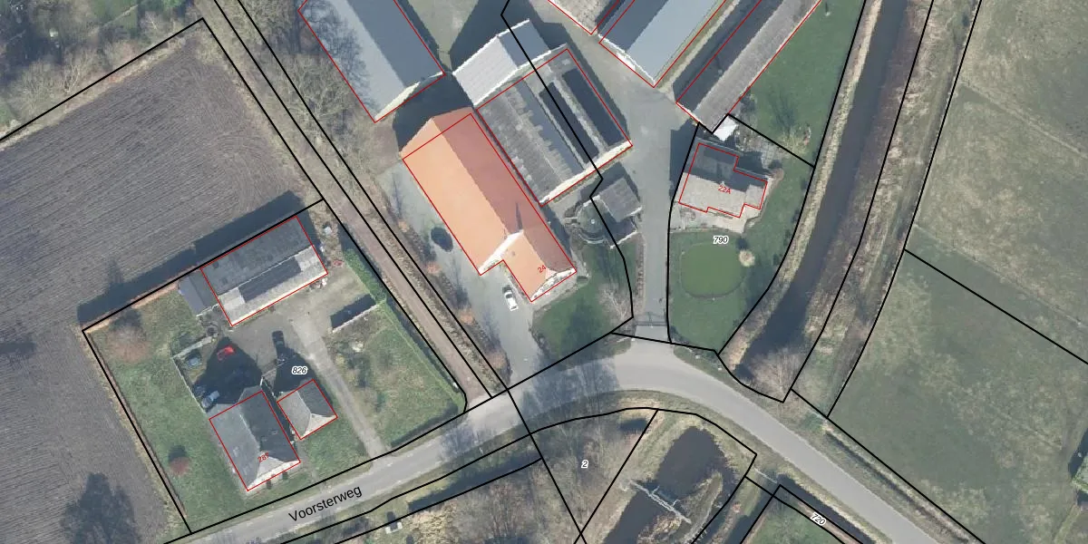 Het perceel waarop het adres ligt is VOO00-H-960. De afkorting 'VOO00' staat voor kadastrale gemeente Voorst. De gemiddelde perceeloppervlakte in de kadastrale gemeente Voorst is 1,0 ha. Dit perceel is met zijn 2,5 ha dus groter dan gemiddeld. Het kleinste perceel in de kadastrale gemeente is 0 m² groot. De grootste perceeloppervlakte is 94,4 ha. Er zijn geen andere adressen aanwezig op het perceel. De huidige grenzen van het perceel zijn digitaal in de Basisregistratie Kadaster (BRK) geregistreerd op 21-01-2026.