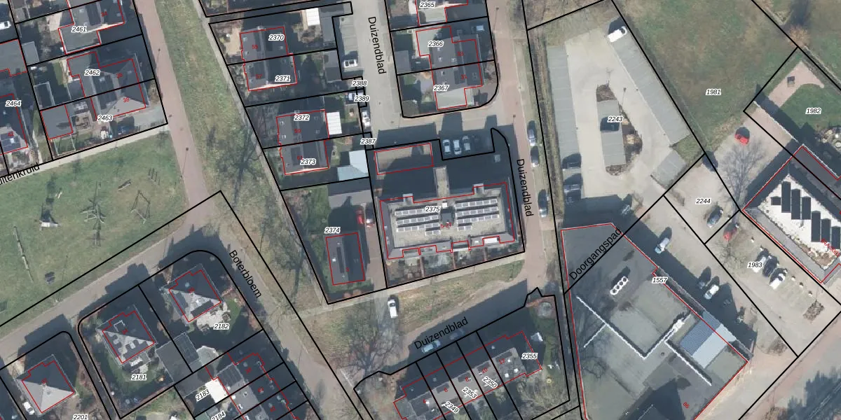 Duizendblad 25 is gelegen op kadastraal perceel VOO00G2375. Deze kadastrale aanduiding is uniek en wordt gebruikt door het Kadaster om eigendomsrechten en andere zakelijke rechten vast te leggen. Het perceel maakt onderdeel uit van de kadastrale gemeente Voorst.