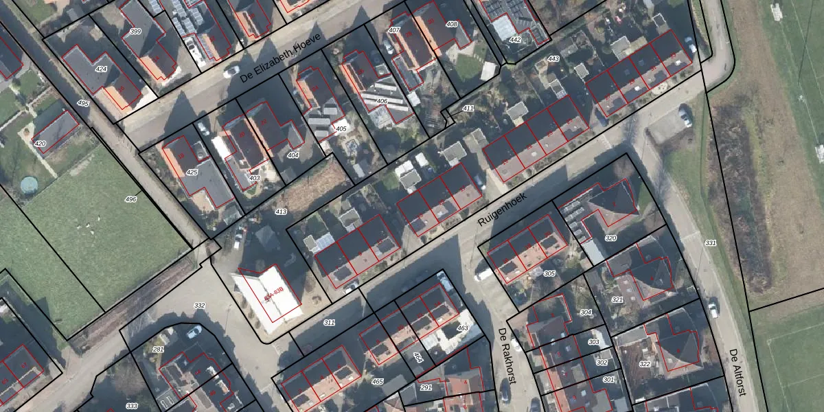 Het perceel waarop Ruigenhoek 13 staat heeft een oppervlakte van 2648 m². Dit is een zeer groot perceel. De perceeloppervlakte wordt geregistreerd door het Kadaster. Gedetailleerde informatie over de maten van dit perceel kunt u vinden in het rapport Kadastrale kaart met maatvoering van Ruigenhoek 13.