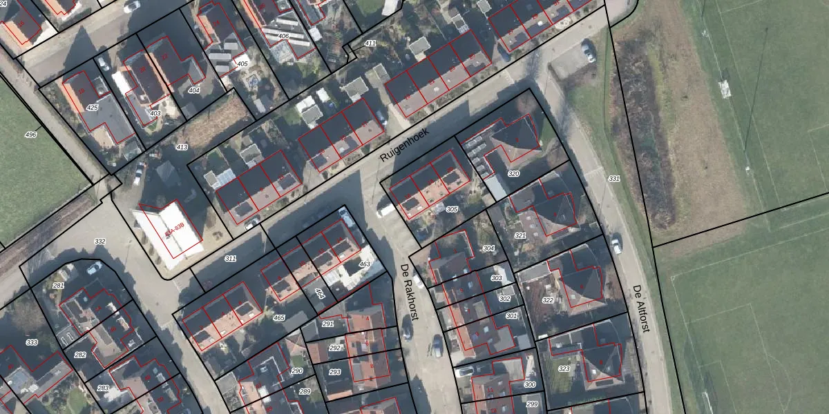 Het perceel waarop Ruigenhoek 16 staat heeft een oppervlakte van 404 m². Dit is een groot perceel. De perceeloppervlakte wordt geregistreerd door het Kadaster. Gedetailleerde informatie over de maten van dit perceel kunt u vinden in het rapport Kadastrale kaart met maatvoering van Ruigenhoek 16.