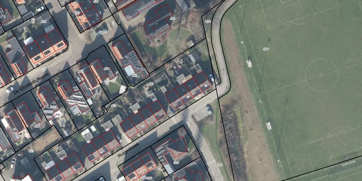 Het perceel waarop Ruigenhoek 29 staat heeft een oppervlakte van 2648 m². Dit is een zeer groot perceel. De perceeloppervlakte wordt geregistreerd door het Kadaster. Gedetailleerde informatie over de maten van dit perceel kunt u vinden in het rapport Kadastrale kaart met maatvoering van Ruigenhoek 29.