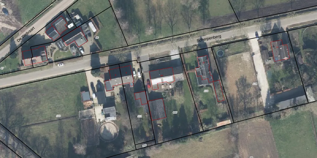 Het perceel waarop Scherpenberg 8-A staat heeft een oppervlakte van 1480 m². Dit is een zeer groot perceel. De perceeloppervlakte wordt geregistreerd door het Kadaster. Gedetailleerde informatie over de maten van dit perceel kunt u vinden in het rapport Kadastrale kaart met maatvoering van Scherpenberg 8-A.