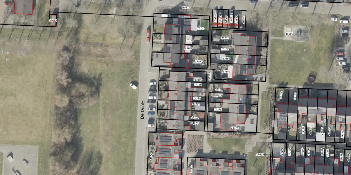 Het perceel waarop De Doole 19 staat heeft een oppervlakte van 149 m². Dit is een middelgroot perceel. De perceeloppervlakte wordt geregistreerd door het Kadaster. Gedetailleerde informatie over de maten van dit perceel kunt u vinden in het rapport Kadastrale kaart met maatvoering van De Doole 19.