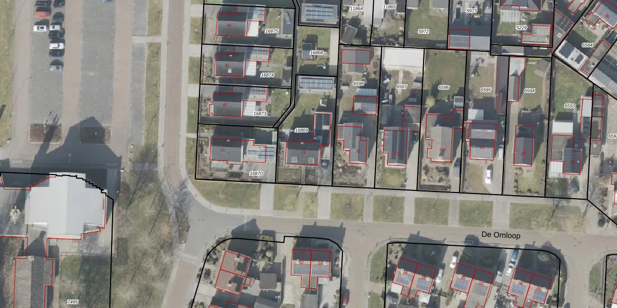 Het perceel waarop De Omloop 13 staat heeft een oppervlakte van 585 m². Dit is een groot perceel. De perceeloppervlakte wordt geregistreerd door het Kadaster. Gedetailleerde informatie over de maten van dit perceel kunt u vinden in het rapport Kadastrale kaart met maatvoering van De Omloop 13.