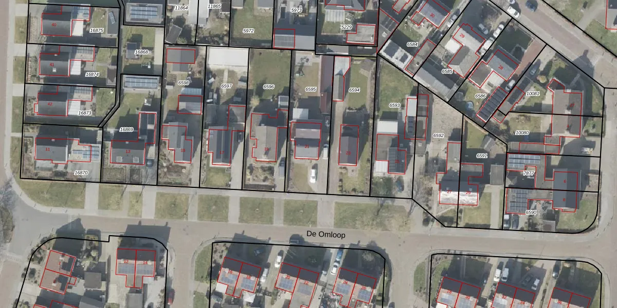 Het perceel waarop De Omloop 21 staat heeft een oppervlakte van 633 m². Dit is een groot perceel. De perceeloppervlakte wordt geregistreerd door het Kadaster. Gedetailleerde informatie over de maten van dit perceel kunt u vinden in het rapport Kadastrale kaart met maatvoering van De Omloop 21.