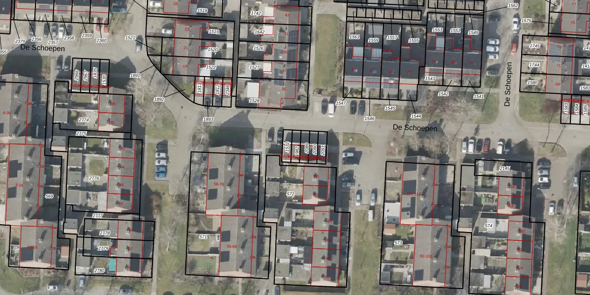 Het perceel waarop De Schoepen 80-GB15 staat heeft een oppervlakte van 32 m². Dit is een klein perceel. De perceeloppervlakte wordt geregistreerd door het Kadaster. Gedetailleerde informatie over de maten van dit perceel kunt u vinden in het rapport Kadastrale kaart met maatvoering van De Schoepen 80-GB15.