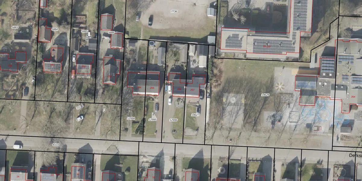 Derksweg 256 is gelegen op kadastraal perceel EMN00I12996. Deze kadastrale aanduiding is uniek en wordt gebruikt door het Kadaster om eigendomsrechten en andere zakelijke rechten vast te leggen. Het perceel maakt onderdeel uit van de kadastrale gemeente Emmen.