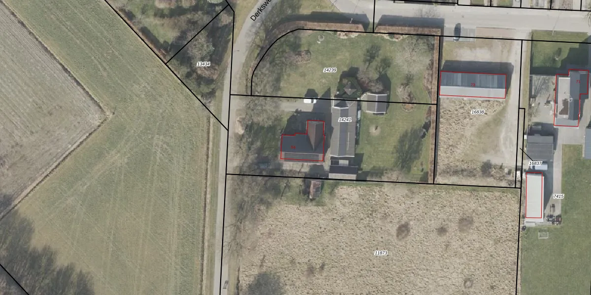 Het perceel waarop Derksweg 54 staat heeft een oppervlakte van 1897 m². Dit is een zeer groot perceel. De perceeloppervlakte wordt geregistreerd door het Kadaster. Gedetailleerde informatie over de maten van dit perceel kunt u vinden in het rapport Kadastrale kaart met maatvoering van Derksweg 54.