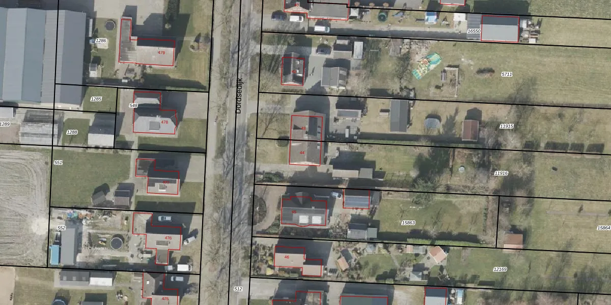 Het perceel waarop Dordsedijk 44 staat heeft een oppervlakte van 2382 m². Dit is een zeer groot perceel. De perceeloppervlakte wordt geregistreerd door het Kadaster. Gedetailleerde informatie over de maten van dit perceel kunt u vinden in het rapport Kadastrale kaart met maatvoering van Dordsedijk 44.