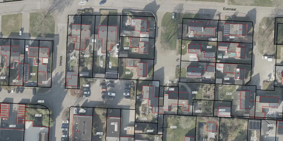 Het perceel waarop Evenaar 50 staat heeft een oppervlakte van 374 m². Dit is een groot perceel. De perceeloppervlakte wordt geregistreerd door het Kadaster. Gedetailleerde informatie over de maten van dit perceel kunt u vinden in het rapport Kadastrale kaart met maatvoering van Evenaar 50.