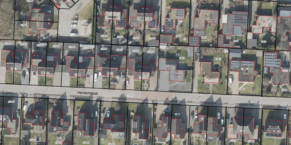 Het perceel waarop Herderstraat 64 staat heeft een oppervlakte van 333 m². Dit is een groot perceel. De perceeloppervlakte wordt geregistreerd door het Kadaster. Gedetailleerde informatie over de maten van dit perceel kunt u vinden in het rapport Kadastrale kaart met maatvoering van Herderstraat 64.