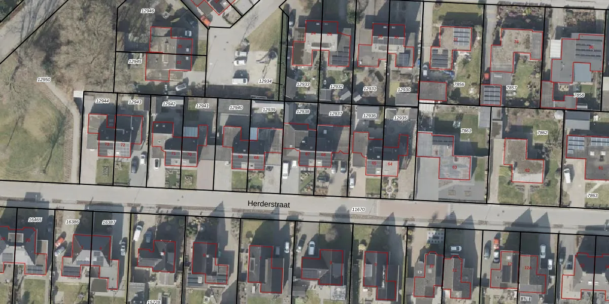 Het perceel waarop Herderstraat 67 staat heeft een oppervlakte van 336 m². Dit is een groot perceel. De perceeloppervlakte wordt geregistreerd door het Kadaster. Gedetailleerde informatie over de maten van dit perceel kunt u vinden in het rapport Kadastrale kaart met maatvoering van Herderstraat 67.