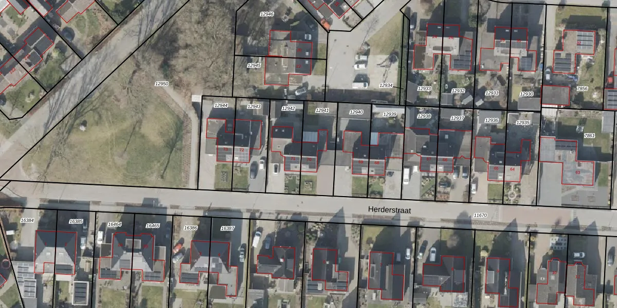 Het perceel waarop Herderstraat 70 staat heeft een oppervlakte van 336 m². Dit is een groot perceel. De perceeloppervlakte wordt geregistreerd door het Kadaster. Gedetailleerde informatie over de maten van dit perceel kunt u vinden in het rapport Kadastrale kaart met maatvoering van Herderstraat 70.