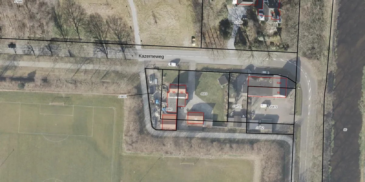 Het perceel waarop Kazerneweg 52 staat heeft een oppervlakte van 757 m². Dit is een groot perceel. De perceeloppervlakte wordt geregistreerd door het Kadaster. Gedetailleerde informatie over de maten van dit perceel kunt u vinden in het rapport Kadastrale kaart met maatvoering van Kazerneweg 52.