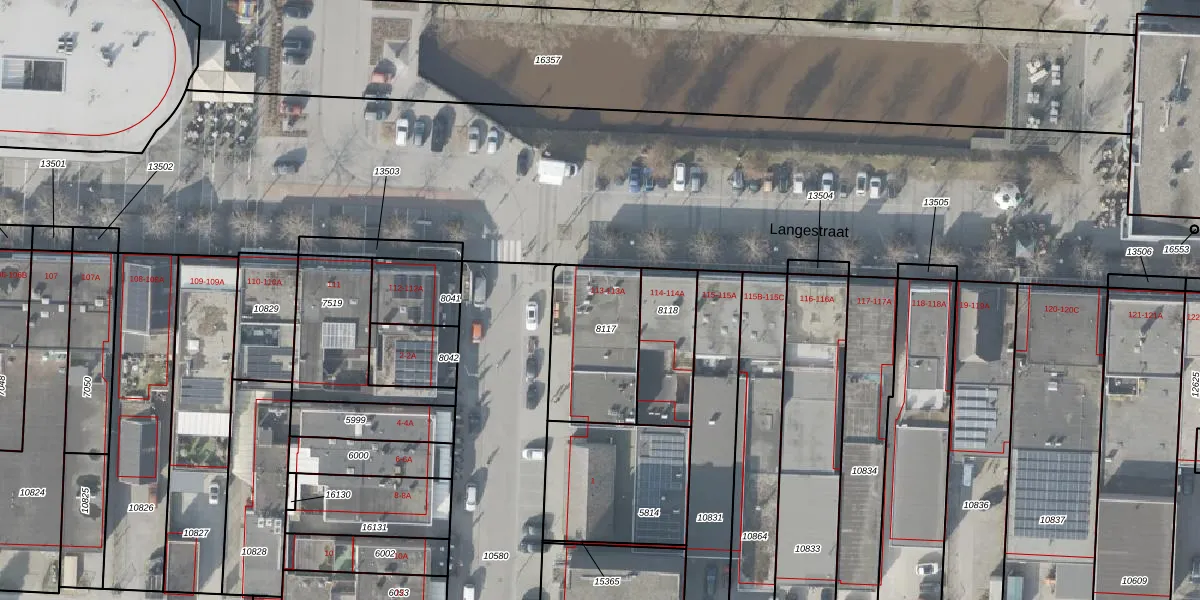 Het perceel waarop Langestraat 113-A staat heeft een oppervlakte van 384 m². Dit is een groot perceel. De perceeloppervlakte wordt geregistreerd door het Kadaster. Gedetailleerde informatie over de maten van dit perceel kunt u vinden in het rapport Kadastrale kaart met maatvoering van Langestraat 113-A.