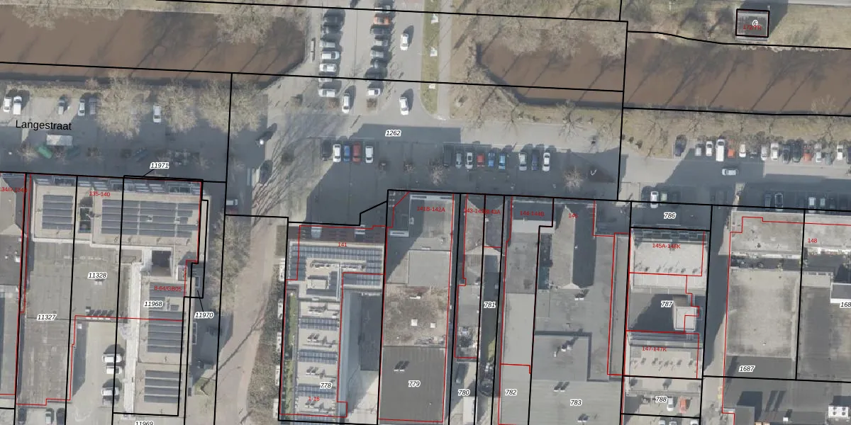 Het perceel waarop Langestraat 142 staat heeft een oppervlakte van 942 m². Dit is een groot perceel. De perceeloppervlakte wordt geregistreerd door het Kadaster. Gedetailleerde informatie over de maten van dit perceel kunt u vinden in het rapport Kadastrale kaart met maatvoering van Langestraat 142.