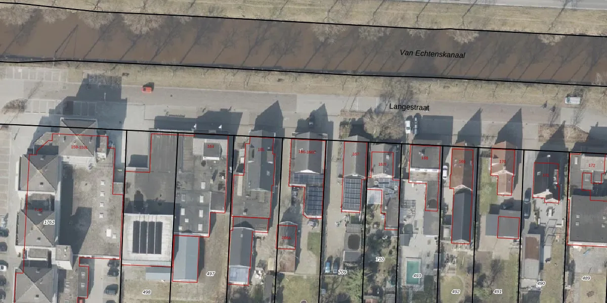 Het perceel waarop Langestraat 166 staat heeft een oppervlakte van 990 m². Dit is een groot perceel. De perceeloppervlakte wordt geregistreerd door het Kadaster. Gedetailleerde informatie over de maten van dit perceel kunt u vinden in het rapport Kadastrale kaart met maatvoering van Langestraat 166.