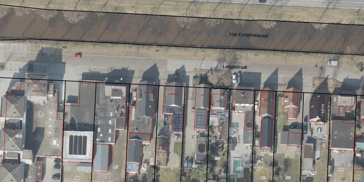 Het perceel waarop Langestraat 166-C staat heeft een oppervlakte van 990 m². Dit is een groot perceel. De perceeloppervlakte wordt geregistreerd door het Kadaster. Gedetailleerde informatie over de maten van dit perceel kunt u vinden in het rapport Kadastrale kaart met maatvoering van Langestraat 166-C.