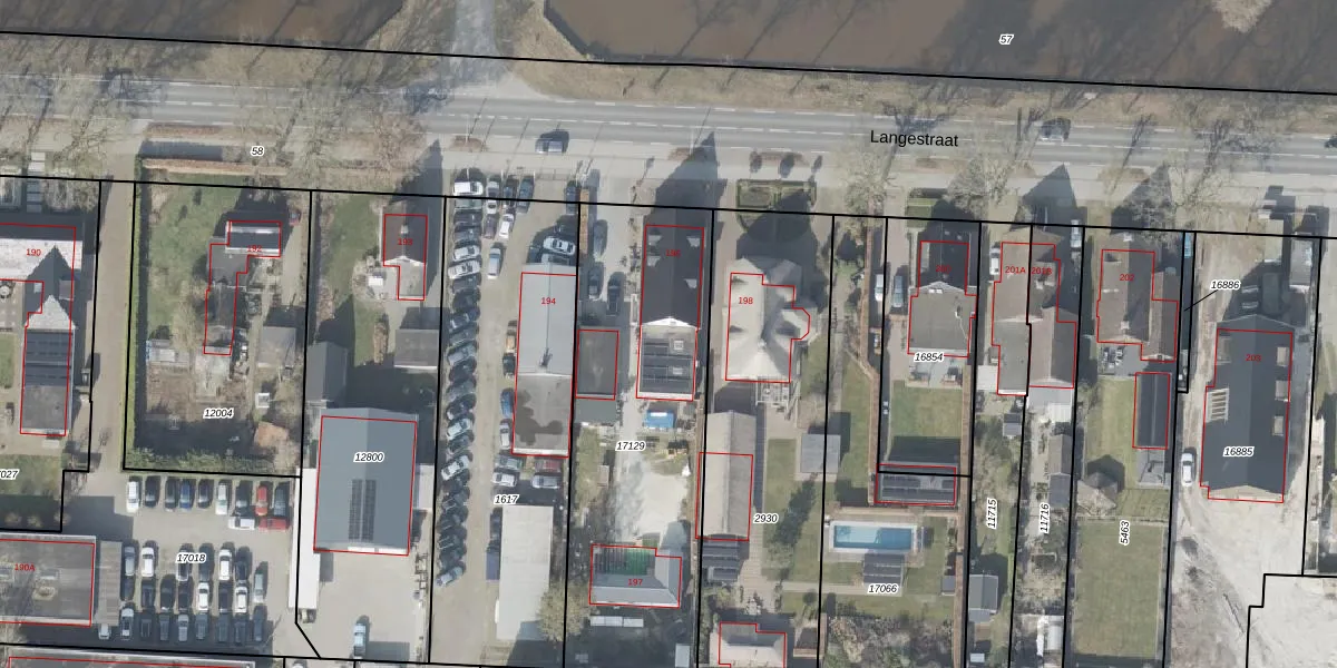 Langestraat 196 is gelegen op kadastraal perceel EMN00I17129. Deze kadastrale aanduiding is uniek en wordt gebruikt door het Kadaster om eigendomsrechten en andere zakelijke rechten vast te leggen. Het perceel maakt onderdeel uit van de kadastrale gemeente Emmen.