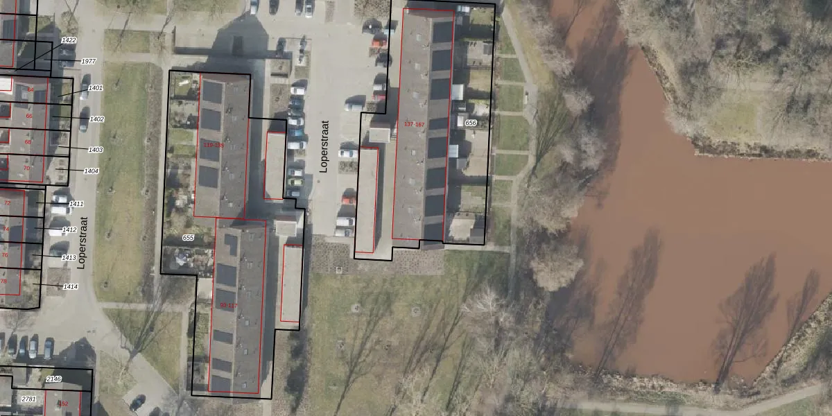 Het perceel waarop Loperstraat 137 staat heeft een oppervlakte van 1692 m². Dit is een zeer groot perceel. De perceeloppervlakte wordt geregistreerd door het Kadaster. Gedetailleerde informatie over de maten van dit perceel kunt u vinden in het rapport Kadastrale kaart met maatvoering van Loperstraat 137.