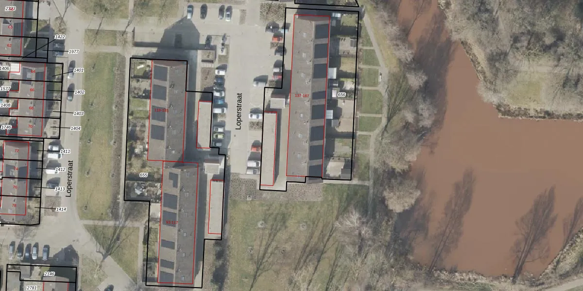 Het perceel waarop Loperstraat 141 staat heeft een oppervlakte van 1692 m². Dit is een zeer groot perceel. De perceeloppervlakte wordt geregistreerd door het Kadaster. Gedetailleerde informatie over de maten van dit perceel kunt u vinden in het rapport Kadastrale kaart met maatvoering van Loperstraat 141.