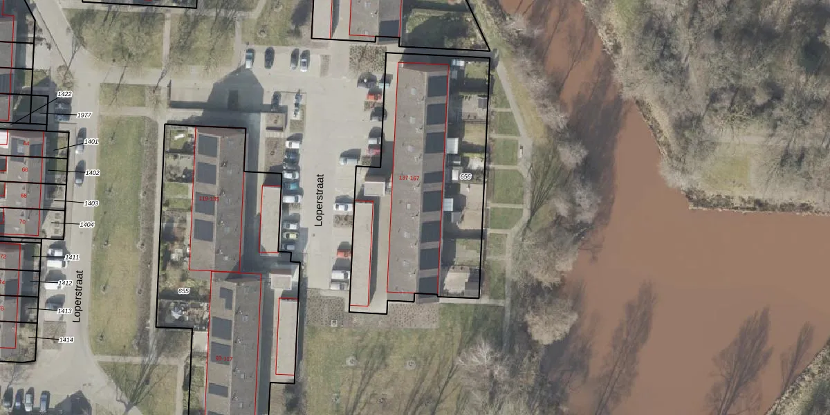 Het perceel waarop Loperstraat 149 staat heeft een oppervlakte van 1692 m². Dit is een zeer groot perceel. De perceeloppervlakte wordt geregistreerd door het Kadaster. Gedetailleerde informatie over de maten van dit perceel kunt u vinden in het rapport Kadastrale kaart met maatvoering van Loperstraat 149.