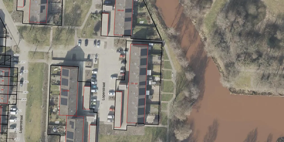 Het perceel waarop Loperstraat 157 staat heeft een oppervlakte van 1692 m². Dit is een zeer groot perceel. De perceeloppervlakte wordt geregistreerd door het Kadaster. Gedetailleerde informatie over de maten van dit perceel kunt u vinden in het rapport Kadastrale kaart met maatvoering van Loperstraat 157.