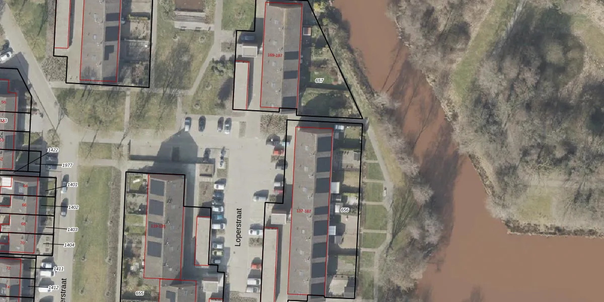 Het perceel waarop Loperstraat 165 staat heeft een oppervlakte van 1692 m². Dit is een zeer groot perceel. De perceeloppervlakte wordt geregistreerd door het Kadaster. Gedetailleerde informatie over de maten van dit perceel kunt u vinden in het rapport Kadastrale kaart met maatvoering van Loperstraat 165.
