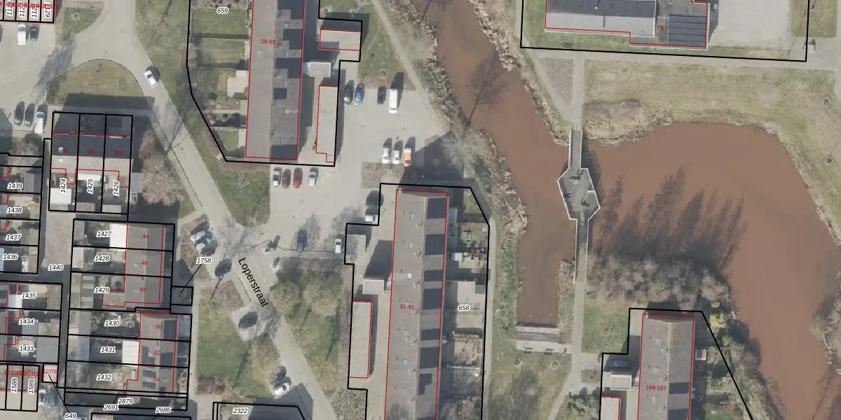 Het perceel waarop Loperstraat 69 staat heeft een oppervlakte van 1755 m². Dit is een zeer groot perceel. De perceeloppervlakte wordt geregistreerd door het Kadaster. Gedetailleerde informatie over de maten van dit perceel kunt u vinden in het rapport Kadastrale kaart met maatvoering van Loperstraat 69.