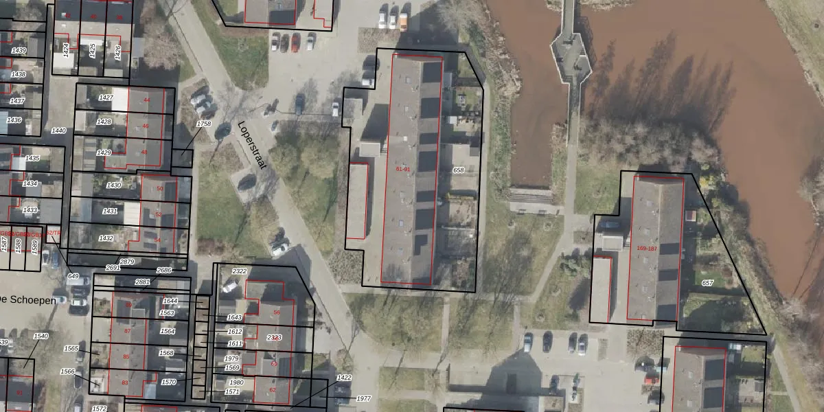 Het perceel waarop Loperstraat 77 staat heeft een oppervlakte van 1755 m². Dit is een zeer groot perceel. De perceeloppervlakte wordt geregistreerd door het Kadaster. Gedetailleerde informatie over de maten van dit perceel kunt u vinden in het rapport Kadastrale kaart met maatvoering van Loperstraat 77.