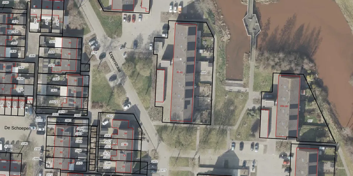 Het perceel waarop Loperstraat 79 staat heeft een oppervlakte van 1755 m². Dit is een zeer groot perceel. De perceeloppervlakte wordt geregistreerd door het Kadaster. Gedetailleerde informatie over de maten van dit perceel kunt u vinden in het rapport Kadastrale kaart met maatvoering van Loperstraat 79.