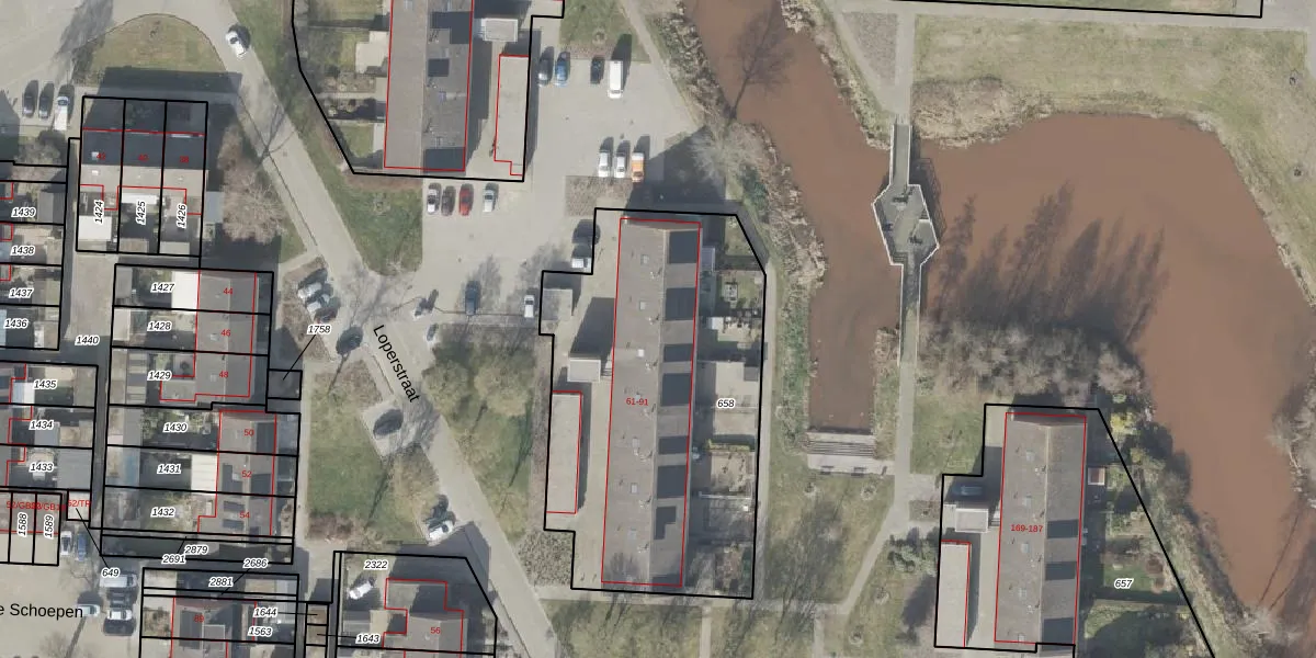 Het perceel waarop Loperstraat 87 staat heeft een oppervlakte van 1755 m². Dit is een zeer groot perceel. De perceeloppervlakte wordt geregistreerd door het Kadaster. Gedetailleerde informatie over de maten van dit perceel kunt u vinden in het rapport Kadastrale kaart met maatvoering van Loperstraat 87.