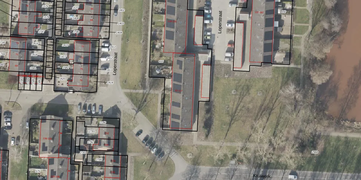 Het perceel waarop Loperstraat 99 staat heeft een oppervlakte van 2042 m². Dit is een zeer groot perceel. De perceeloppervlakte wordt geregistreerd door het Kadaster. Gedetailleerde informatie over de maten van dit perceel kunt u vinden in het rapport Kadastrale kaart met maatvoering van Loperstraat 99.