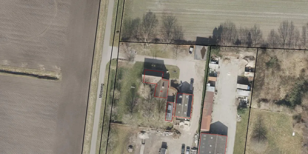 Het perceel waarop Mosweg 40 staat heeft een oppervlakte van 5960 m². Dit is een zeer groot perceel. De perceeloppervlakte wordt geregistreerd door het Kadaster. Gedetailleerde informatie over de maten van dit perceel kunt u vinden in het rapport Kadastrale kaart met maatvoering van Mosweg 40.
