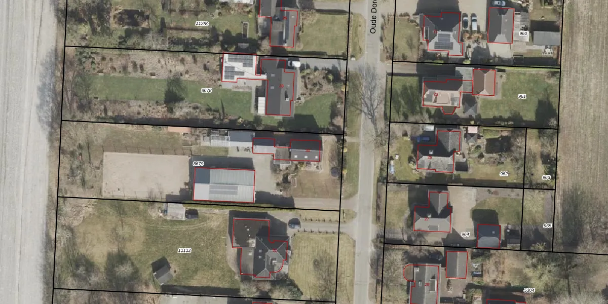 Het perceel waarop Oude Dordsedijk 30 staat heeft een oppervlakte van 2350 m². Dit is een zeer groot perceel. De perceeloppervlakte wordt geregistreerd door het Kadaster. Gedetailleerde informatie over de maten van dit perceel kunt u vinden in het rapport Kadastrale kaart met maatvoering van Oude Dordsedijk 30.