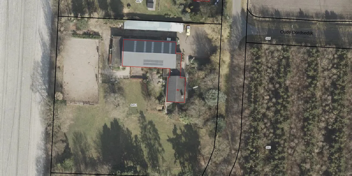 Oude Dordsedijk 82 is gelegen op kadastraal perceel EMN00I8451. Deze kadastrale aanduiding is uniek en wordt gebruikt door het Kadaster om eigendomsrechten en andere zakelijke rechten vast te leggen. Het perceel maakt onderdeel uit van de kadastrale gemeente Emmen.